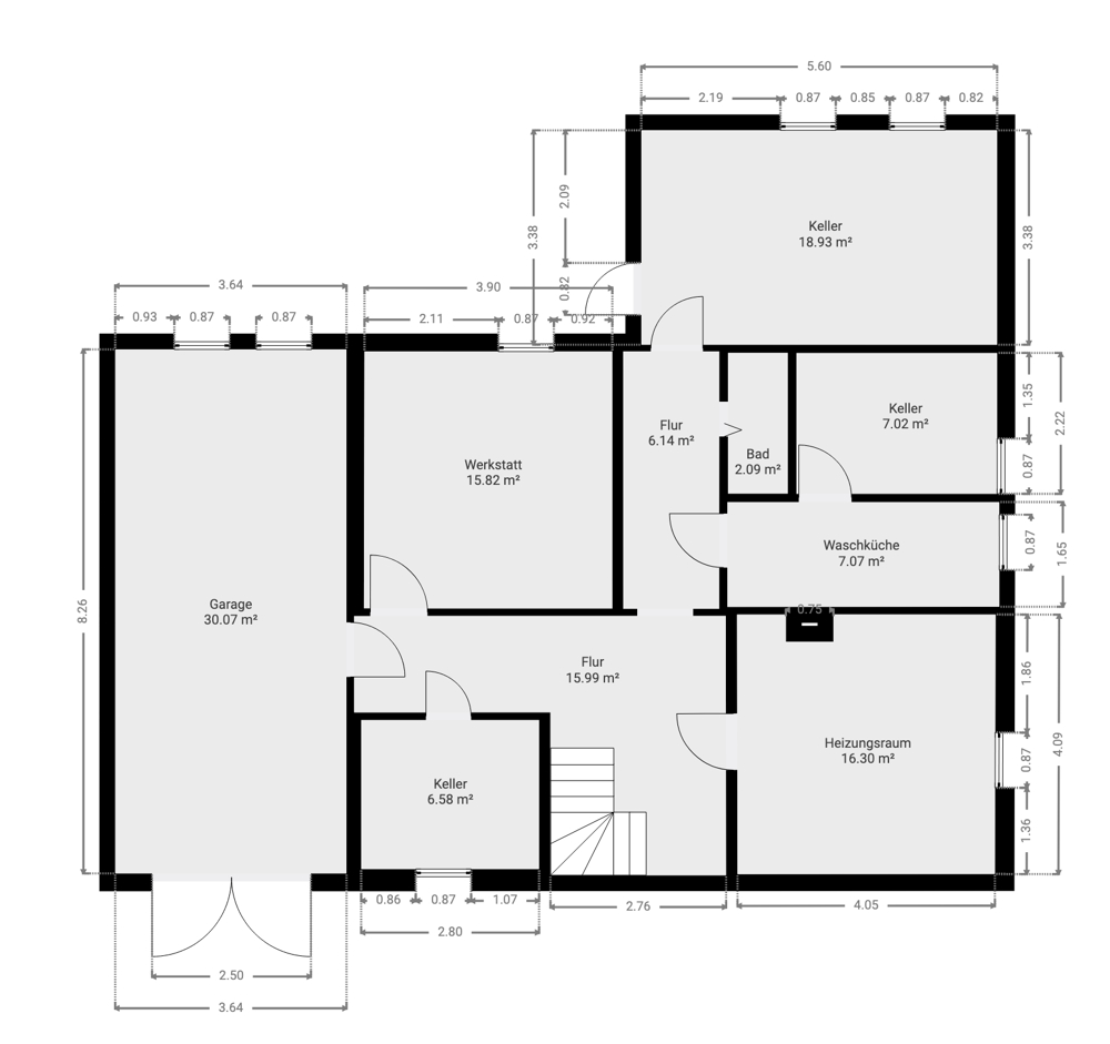 Vollkeller mit Hauswirtschaftsräumen, Garage und Gartenzugang