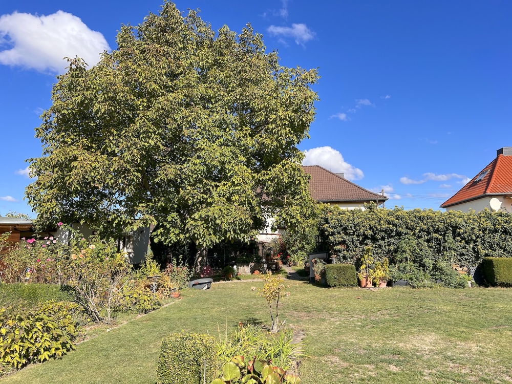 Das Eigentumsgrundstück umfasst ca. 616 m² und begeistert mit einem liebevoll angelegten Garten, dessen Zentrum ein prachtvoller Nussbaum bildet. Hier steht zusätzlich eine zweite Garage mit elektrischem Tor zur Verfügung.