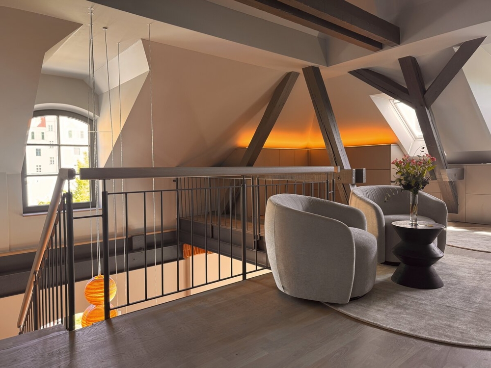 Auf großzügigen 5 Zimmern, darunter 3 Schlafzimmer sowie eine offene Galerie, bietet das Haus vielfältige Möglichkeiten für individuelles Wohnen und Erholung. Der hochwertige Parkettboden schafft eine behagliche Atmosphäre im gesamten Haus, während der neu eingebaute Kamin für wohlige Stunden zwischen Lesesofa und Wohnraum sorgt. Die exklusive Innenausstattung umfasst maßgefertigte Einbaumöbel mit einem stimmungsvollen Lichtkonzept sowie eine erstklassige Küche, die mit hochwertigen Geräten versehen ist.